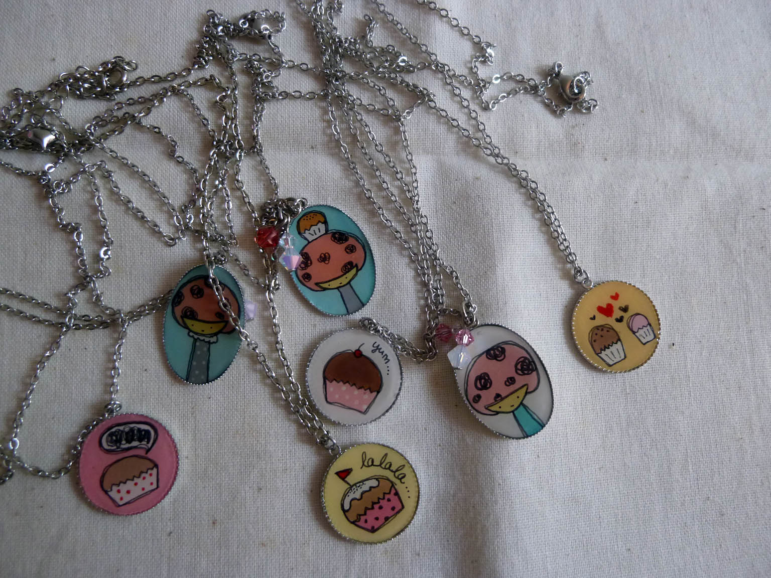 Mushroom girl and muffin necklace that will be available at Pipit Wonderful Market that's coming soon on this Saturday!